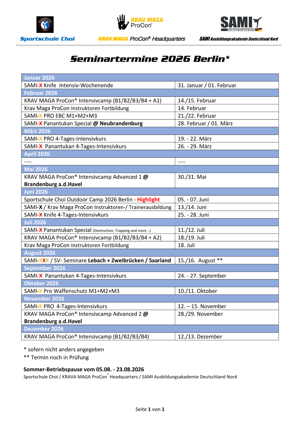 !!! Anmelden via Mail an info@kmp-b.de oder unter www.kravmaga-procon.de (ggf. über das Kontaktformular, sofern die Veranstaltung noch nicht erstellt wurde!)